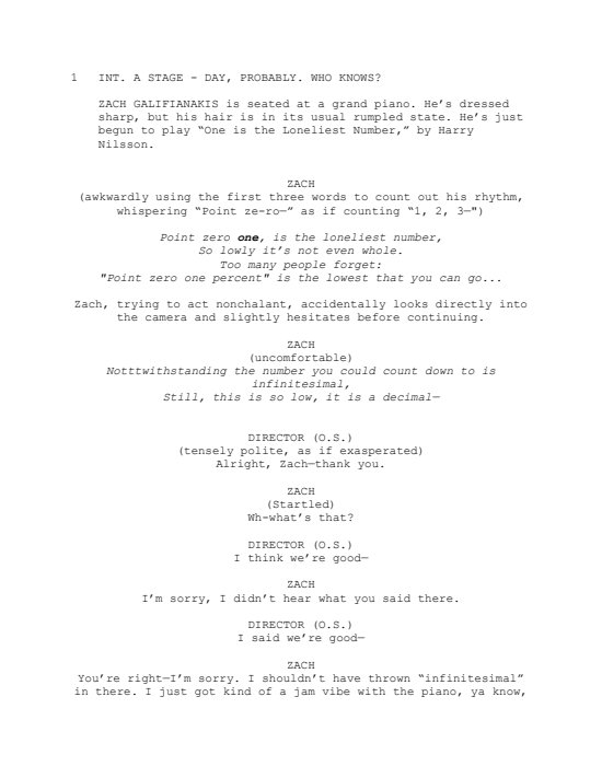 Zach Galifianakis sings a moody rendition of the famous "One is the Loneliest Number," called ".01 is the Loneliest Number."
